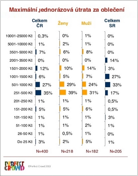 6 % Čechů a 27 % Slováků. Za vyššími výdaji na oblečení na Slovensku však stojí spíše dražší kusy, než výrazně větší množství.