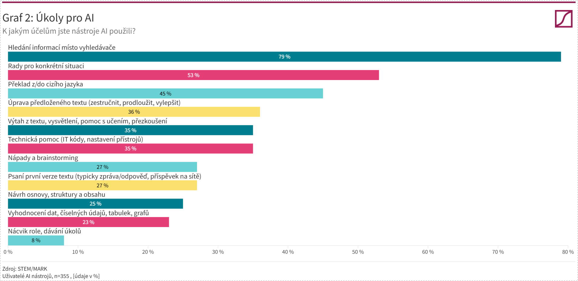 „AI si uživatele získala neomezenými možnostmi použití. Pokud někdo AI vyzkoušel, používá ji pak na denní nebo týdenní bázi,“ říká Zuzana Švalbová z agentury STEM/MARK.