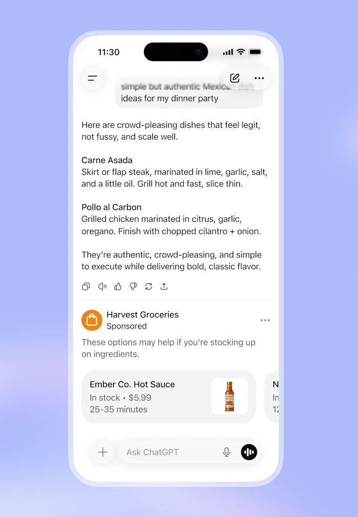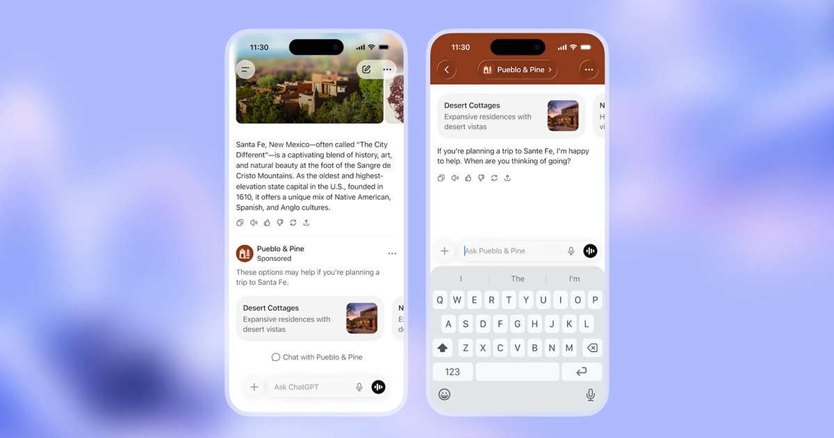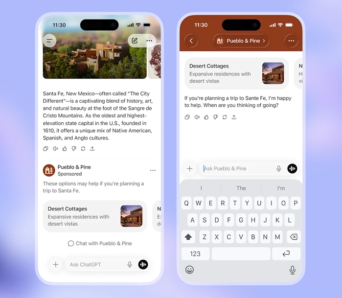 Reklamy přímo v konverzacích ovšem poskytují příležitost pro mnohem širší škálu inzerentů. Nabízí se příklad vytvoření cestovního itineráře, ke kterému bude přidána i personalizovaná reklama s nabídkou dopravy, hotelů, restaurací či akcí. Pro zachování důvěryhodnosti je ale dle autora tohoto textu nutné jasné odlišit reklamní plochy od rad uvnitř konverzací. S ChatGPT má mnoho uživatelů takřka intimní vztah, probírají s ním i své nejniternější myšlenky. Takový vztah si s netransparentním reklamním agentem vybudejete ztěží. Náhledyx reklam od OpenAI jisté odlišení mají, ale rozhodně by mohlo být výraznější.
