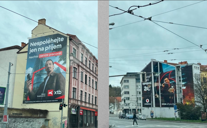 Své tvrzení podpořil následujícím snímkem, kde vidíte kampaně společnosti Vodafone a xtb, které na první pohled vypadají vizuálně téměř stejně.