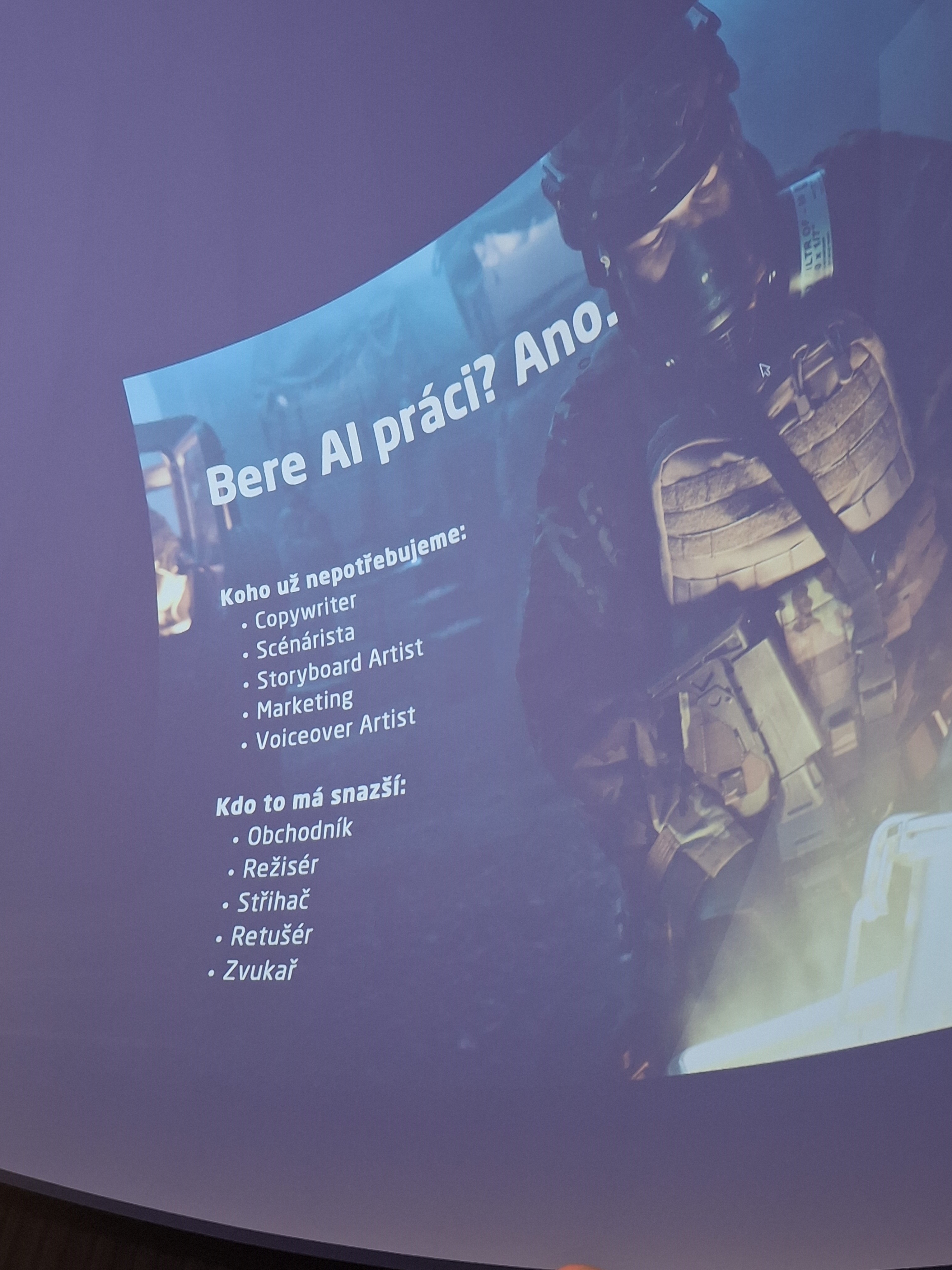 „To nejdůležitější, co pro mě AI dělá, je, že nám pomáhá se scénářem a s nabídkou. Scénář většinou znamená, že klient řekne: ‚Máme tenhle kulomet,‘ a vy z toho musíte uplácat třeba dvoustránkový scénář v dobré angličtině.