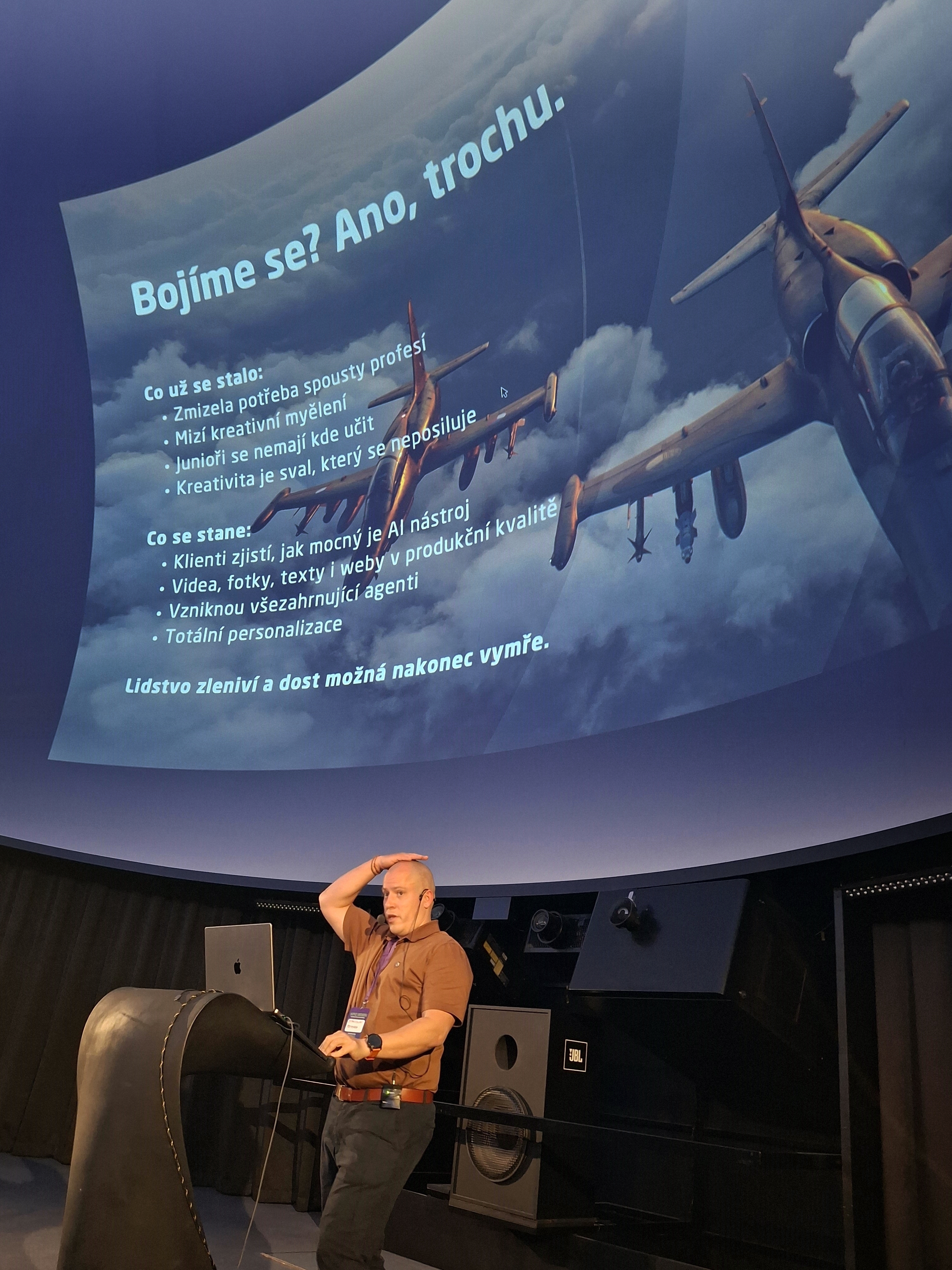 Dokladem pokračujícího nahrazování lidské kreativity AI byla přednáška Stanislava Petery, oslavou lidské kreativity jako ochrany před „AI slopem“ pak byla prezentace Michala Pastiera. Dnes se budeme věnovat té první.