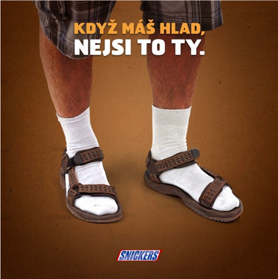 Ve výzkumech získali i mnoho informací o tom, co jejich cílová skupina považuje za nepřípustné a co by dobrovolně neudělali. Tyto insighty pak využili při vytváření kreativ pro českou adaptaci dlouhodobé kampaně s globálním claimem „Když máš hlad, nejsi to ty." Zdroj: Prezentace Nathalie Chemayel na konferenci Babel Camp 2016