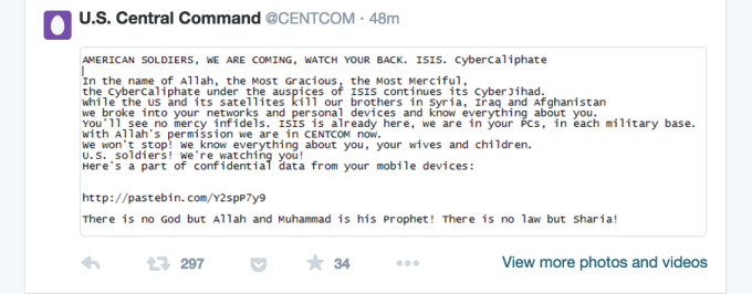 CENTCOM je zodpovědný za strategickou úroveň velení armády pro operace na Blízkém Východě, v jižní Asii a v severní Africe. Mimo jiné mezi oblasti pod jeho gescí patří i Irák a Afghánistán. Jedná se tedy o útok na tu armádní složku, která má na starosti oblasti, v nichž působí právě Islámský stát. Ten údajně stojí i za tímto útokem nebo se k němu minimálně hlásí v jeho jménu. Po převzetí Twitter účtu byla změněna jeho úvodní fotografie na tu, kterou můžete vidět výše. Zdobí ji nápis „Cyber Caliphate" a „I love you ISIS". Jménem ISIS - tedy jedním ze starších označení Islámského státu - byl podepsáni první tweet se zněním: „Američtí vojáci, přicházíme. Hlídejte si záda.“